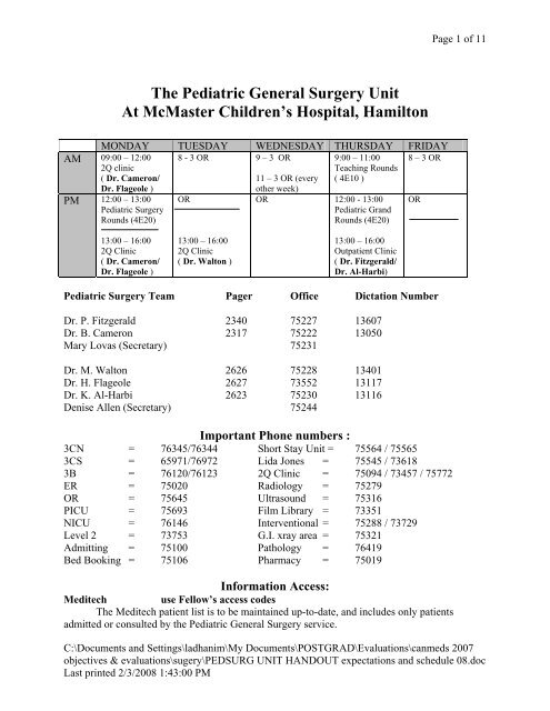 The Pediatric General Surgery Unit At Mcmaster Children S