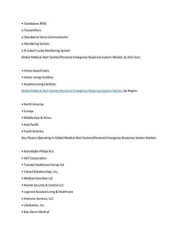Global Medical Alert System Personal Emergency Response System Market By Type Landline Type Mobile Type And Standalone Type By Application