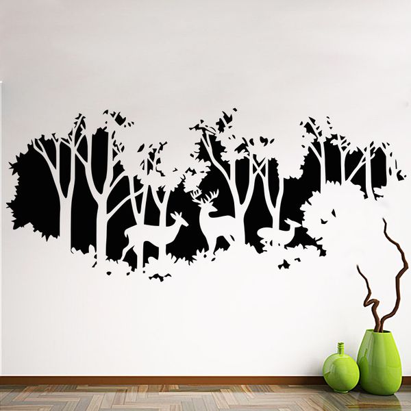 Art New Design Home Decoration Vinyl Deers In Forest Wall Sticker Removable Cheap Pvc House Decor Trees And Animal Decals Wall Decal Quotes Wall Decal