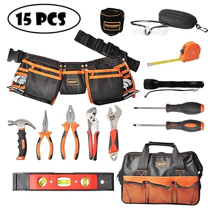 Mysterystone Kids Tool Set 15 Pieces Real Tool Kit For Children With Real Hand Tools Kids Tool Belt Magnetic Wristband Pouch Bag For Small Hands