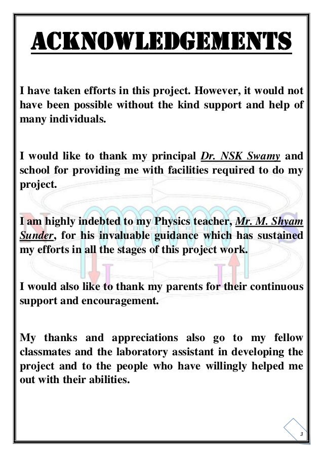 Acknowledgement School Projects Sample Chemistry